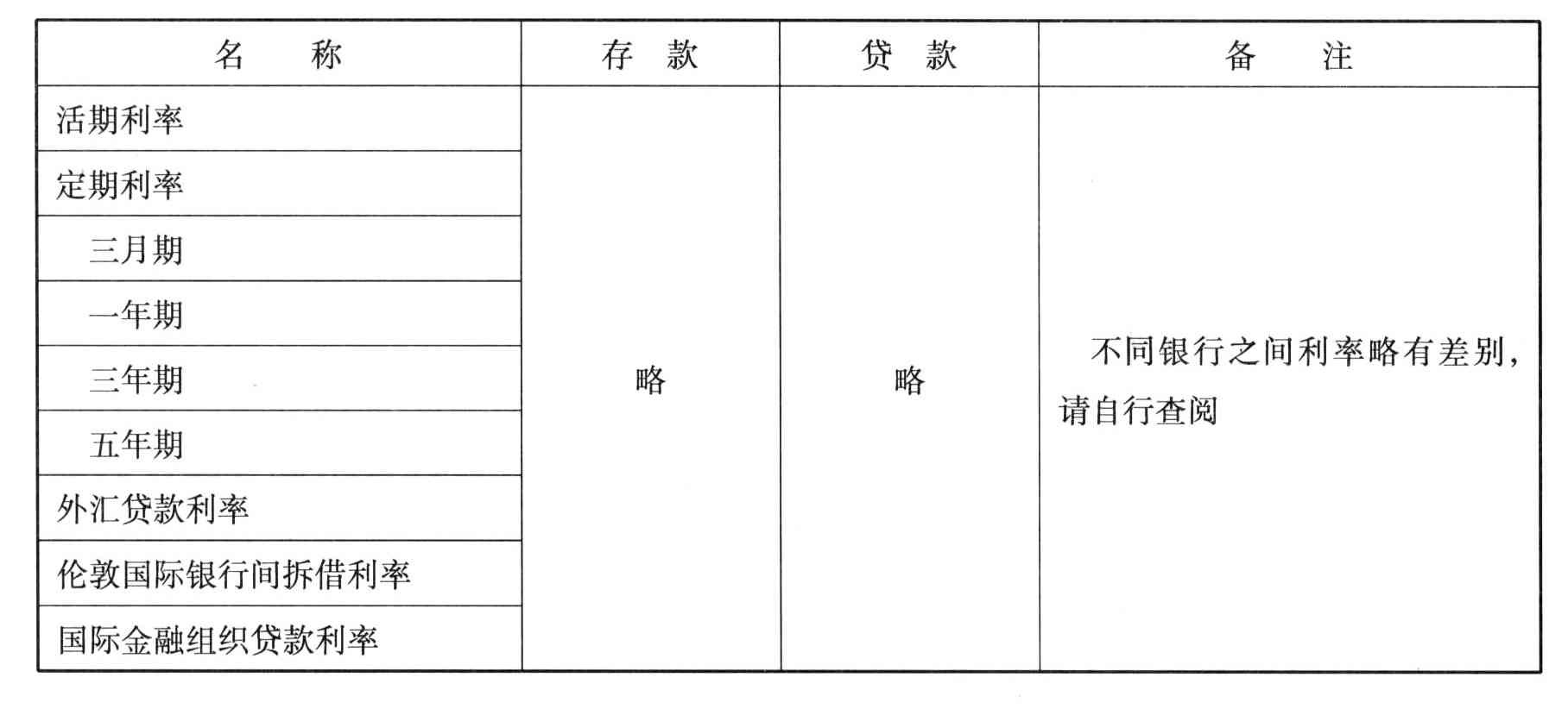 表2.1-6 利率表