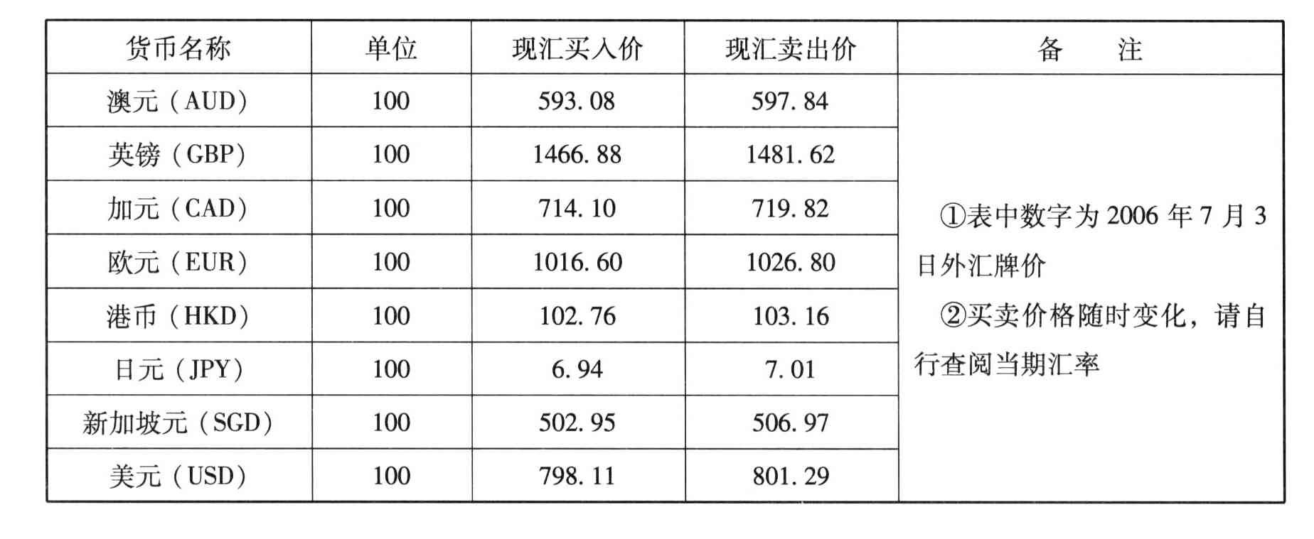 表2.1-7 人民币对主要外汇汇率表