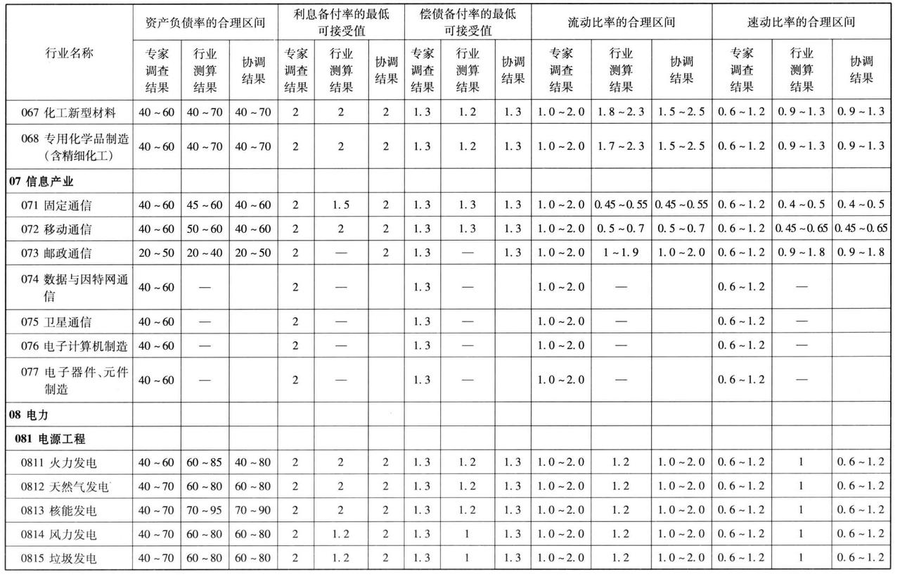 表2.13-2 部分行业建设项目偿债能力测算与协调