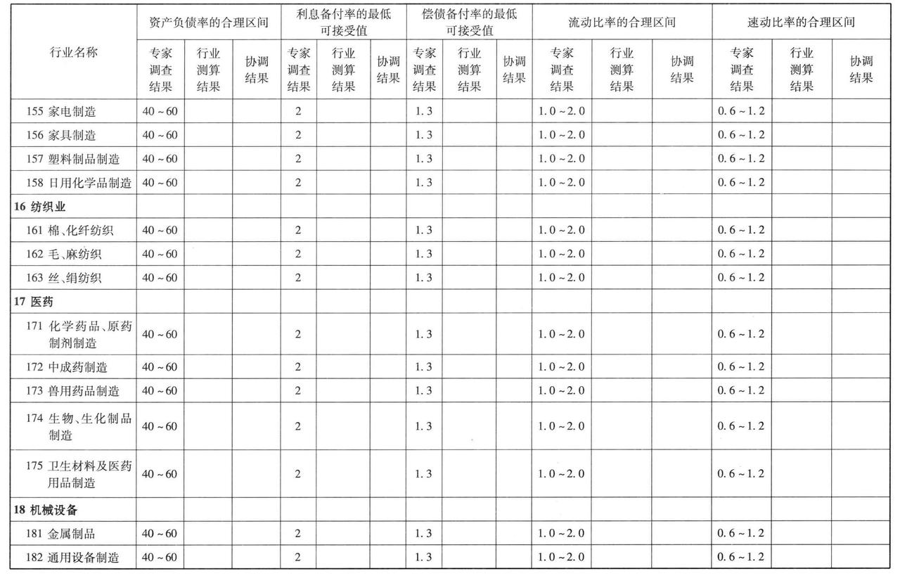 总资产报酬率、净利润率、资产负债率、流动比率、速动比率等参数,应测定其取值的合理区间。具体测定可采取下列方法: